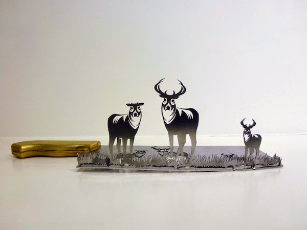 الفنان لي هونغ بو له مجموعة من الأعمال الفنية عبارة عن منحوتات مشاهد معقدة رائعة من السكاكين. وقد تم عرضها في معرض في هونغ كونغ، وهذه السلسلة تتكون من مشاهد مصورة بشكل جميل مقطعة بعناية من السكاكين. وهذه المشاهد وفقا للفنان "بمثابة تحذير حول كيفية أن البشرية ستدمر نفسها في نهاية المطاف بسبب الشراهة وسوء معاملتهم للحيوانات ". هذه بعض الصور : http://3.bp.blogspot.com/-ODTOPA8kFM...Qc/s1600/1.jpg http://1.bp.blogspot.com/-p9U_vBpZiw...0Q/s1600/2.jpg http://3.bp.blogspot.com/-VK3XZT5rMa...nE/s1600/3.jpg http://1.bp.blogspot.com/-qv6LOx5dnl...bI/s1600/4.jpg http://3.bp.blogspot.com/-QceB-teFFb...I0/s1600/5.jpg http://2.bp.blogspot.com/-zRQCo7W927...AE/s1600/6.jpg |