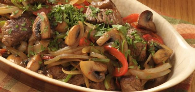![]() ![]() المكوّنات حبّتان من الفليفلة الحلوة الحمراء. ملعقتان كبيرتان من زيت الزّيتون. كيلوغرام ونصف من الحم الكتف، الخالي من العظم والمقطع إلى قطع كبيرة. عشرون غراماً من الزّبدة. ستة فصوص من الثوم المهروس. رأس من الشومر، المقطع إلى شرائح. مئتا غرام من الفطر الطازج، المقطع إلى أربع قطع. كوبان من مرق اللحم مئتا غرام من السبانخ، المفروم خشناً. ملعقة صغيرة من الفلفل الأسود. نصف ملعقة كبيرة من الملح طريقة التحضير نقطّع الفليفة إلى أربعة أجزاء، وننزع البذور والعرق الأبيض. نشويها بحيث تكون القشرة الخارجيّة موجّهة إلى النار، إلى أن تتشكل الفقاقيع السوداء على القشرة. نقشّرها ونقطّعها إلى شرائح سميكة، ونضع نصف كميّة الزيت في مقلاة كبيرة. نضعها على النار، وعندما يسخن الزيت نضيف قطع اللحم، ونقلّب بين الحين والآخر حتى يتحمّر اللحم، ونرفعه من المقلاة. نضيف بقيّة الزيت والزبدة إلى المقلاة، وعندما يسخن الزيت نضيف الثوم، والشومر، والفطر، والفلفل، والملح. نحرّك حتى يصبع الشومر طريّاً ونُعيد اللحم إلى المقلاة. نضيف الفليفلة المشويّة، والمرق وعندما يغلي المزيج نغطّي المقلاة ونتركها فوق نار هادئة مدة ساعة، أو حتى ينضج اللحم نضيف السبانخ، ونترك المقلاة فوق النار حتى يذبل السبانخ يتبع