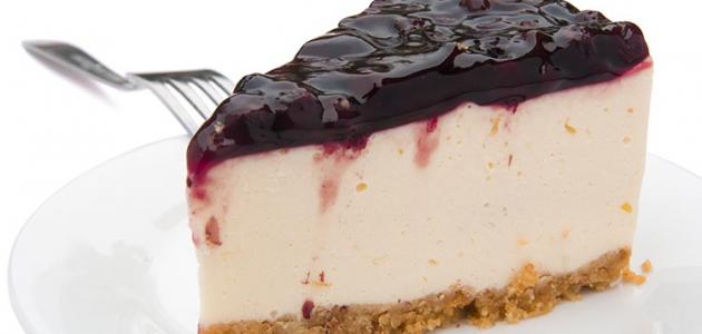 المكوّنات ثلاث علب من البسكويت السادة. علبتان من جلي الفراولة، أو أيّ نكهةٍ أخرى مفضّلة. عشر حبّات من جبنة الكيري. أصبع واحد من الزّبدة متوسّطة الحجم. نصف كوب من الماء الدافئ. علبة واحدة من الحليب المكثّف. علبة واحدة من الكريمة. جيلاتين بودرة. طريقة التحضير كسّري البسكويت بشكلٍ جيّد حتّى يصبح ناعماً كالفتات. جهّزي صينيّة التشيز كيك، لتكون بمقاس 20 سم تقريباً، ويمكنك استخدام صينيّة عاديّة بعد تبطينها إذا لم تكن متوفّرةً لديك الصينيّة الخاصة بالتشيز كيك افردي البسكويت والزّبدة المذابة بالتساوي في الصينيّة، وارفعي الأطراف جيّداً. ضعي الصينيّة في الثلّاجة لمّدة ساعة تقريباً حتّى تتجمّد . أضيفي في وعاءٍ جانبيّ ملعقتان من مسحوق الجيلاتين، وربع كوبٍ من الماء، وقلّبيهما بشكلٍ جيّد حتّى يمتصّ الجيلاتين الماء ويتجمّد. ضعي ربع كوب من الماء المغلي على النّار واتركي الجيلاتين داخله حتّى يذوب بشكلٍ جيّد، واتركيه حتّى يبرد. اخلطي في وعاءٍ خاص الجبنة، والكريمة، والحليب باستخدام المضرب الكهربائيّ، واخفقيها بشكلٍ جيّد، وضعي عليها بشر البرتقال أو الليمون أو اليوسفي (المندلينا)، وضعي الجلاتين الدافئ واخلطي جميع المكوّنات بشكلٍ جيّد. أضيفي الكريمة إلى الخليط، وقلّبيها باستخدام ملعقة الخشب. ضعي الخليط فوق البسكويت، واتركيه في الثلّاجة لمدّة 6-8 ساعات. جهّزي الجلي؛ عن طريق إضافة عبوتين منه إلى كوبين من الماء الدافئ على النّار حتّى يغلي تماماً، ومن ثمّ ضعيه في الثلّاجة. صبّي الجلي على وجه التشيز كيك، وقومي بإدخاله إلى الثلّاجة حتّى يتجمّد. ارفعي ورق الزّبدة من التشيز كيك عند تجمّد الجلي. زيّني التشيز كيك بالكريمة والفواكة يتبع