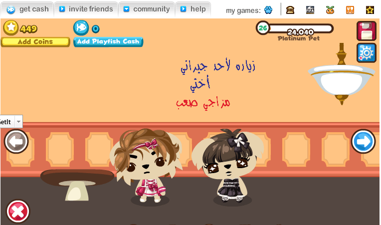هاذي اللعبه كمان كل ماطفشت دخلت فيها بس لي فتره طويله مادخلتها واكبر دليل شوفو الذباب على البنوته ![]() لبي قلبها نايمه ع الباب وعليها ذباب لاني لي فتره مادخلت روشتها شوفو في هديه واصله من احد الجيران شوفوها ع الفرشه ولاحضو فوق ع اليسار في ظرف برضو في رساله *_^ طبعا صحيتها واخذتها لدورة المياه وانتو بكرامه عشان اغسلها ![]() واخيرا صارت نظيفه ورحنا بعدها للمطبخ عشان ااكلها وكان طلبها مثل موشايفين تبي كمثرى ![]() بالعافيه عليك ![]() بعدها اخذتها عشان اروشها ![]() احترت وش البسها الاسود ام الوردي ![]() ![]() وتم القرار على الوردي وبعدها سرينا نجلس بغرفة الجلوس ![]() ![]() قررنا انا وبالنتوته نروح زياره لأحد الجيران وقررنا نروح لاختي واخيرا وصلنا لمزاجي صعب ![]() خلاص بنوتي حست بالتعب وقررنا نرجع البيت ![]() هذا الشارع لو دققتو زين تلاقو اسواق ومحل فاكهه ومحل اثاث و كل الي يخظر ع بالكم وصلنا للببيت والبنوته كانت ميته من التعب وأخذتها لغرفة النوم وتوته توته خلصت الحتوته ![]() تصبحون على خير همسه : انا اللي مأثثه البيت :178: