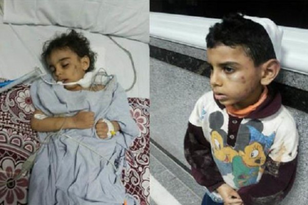 ويصاحبه أخوه حسام 7 سنوات مصابا بجرح في رأسه