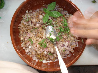 http://2.bp.blogspot.com/_ewlsCT-iKg...HI/s400/12.JPG طاجن الدجاج بالخضروات في الفرن المكونات نصف دجاجة مقطعة الي نصفين 2بصل كبير مفروم خشن 1طماطم كبيرة مقطعة الي شرائح 1فلفل اخضرصغيرة مقطعة الي شرائح 1بطاطس متوسطة مقطعة شرائح 1جزر متوسطة مقطعة الي شرائح رفيعة (اختياري) http://3.bp.blogspot.com/_ewlsCT-iKg...C0c/s400/1.JPG http://4.bp.blogspot.com/_ewlsCT-iKg...Xvk/s400/3.JPG التوابل نصف ملعقة صغيرة توابل بيتزا نصف ملعقة صغيرة توابل مشاوي نصف ملعقة صغيرة توابل دجاج نصف ملعقة صغيرة جنزبيل ملح وفلفل اسود زعتر طازج او جاف اكليل الجبل طازج او جاف ريحان طازج او جاف http://3.bp.blogspot.com/_ewlsCT-iKg...gJI/s400/2.JPG طريقة التحضير 1-تغسل قطع الدجاج جيدا ثم نحضير الضاجن ونضع البصل المفروم ثم نضيف التوابل ونقلب والملح والفلفل الاسود http://4.bp.blogspot.com/_ewlsCT-iKg...f4/s400/13.JPG http://2.bp.blogspot.com/_ewlsCT-iKg...e-E/s400/4.JPG ثم نضع التوابل العطرية الطازجة http://2.bp.blogspot.com/_ewlsCT-iKg...E40/s400/5.JPG 2-ثم نقوم بحشو الدجاج بجزء من خلطة البصل تترك جانبا http://3.bp.blogspot.com/_ewlsCT-iKg...58g/s400/7.JPG http://3.bp.blogspot.com/_ewlsCT-iKg...58g/s400/7.JPG 3-ثم نقوم برص شرائح البطاطس وجزر والفلفل الاخضر وشرائح الطماطم ثم نقوم برص قطع الدجاج وتدهن وش كل قطعة بالسمن http://3.bp.blogspot.com/_ewlsCT-iKg...ETM/s400/8.JPG http://1.bp.blogspot.com/_ewlsCT-iKg...HNg/s400/9.JPG 4-وتوضع في الفرن لمدة1 ساعة الي 1ونصف ساعة الي ان تحمر وتخرج وتقدم مع قطعة الفراخ شرائح الخضار http://4.bp.blogspot.com/_ewlsCT-iKg...t4/s400/12.JPG |