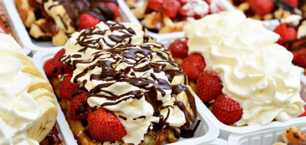 ![]() ![]() ![]() بسكويت الآيس كريم المكونات كوب من الحليب. بيضة. بياض بيضة. ثلاثة أرباع الكوب من السكر. كوب من الدقيق. ملعقتان كبيرتان منن الزبدة، اللينة. ملعقتان كبيرتان من العسل. نصف ملعقة صغيرة من الفانيليا. ملعقة صغيرة بيكنج باودر طريقة التحضير نحضر وعاء كبيراً ونضع الحليب في الوعاء ثم نضع الزبدة فوق الحليب، ويضاف سكر البودرة ويخفق الخليط جيداً ويستمر الخفق حتى يصبح الخليط ليناً مثل الكريمة. يضاف البيض وبياض البيض إلى خليط الزبدة واللبن والسكر وتخفق المكونات معاً. تضاف ملعقة الفانليا وملعقة البكينج بودر وملعقة العسل إلى الخليط السابق. يضاف الدقيق تدريجياً إلى الخليط السابق ونخفق جيداً حتى تتجانس العجينة ونتركها تستريح لمدة لا تقل عن ربع ساعة. نحضر ورق زبدة وندهنه بقليل من السمنة ونضعه وسط صينية. نأخذ قطعة من العجينة ونفرد طبقة رقيقة على ورق الزبدة على شكل دائرة. ندخل العجينة إلى الفرن على درجة حرارة 220 درجة مئوية لمدة عشر إلى خمس عشرة دقيقة. عندما يتغير لون العجينة ويصبح ذهبياً نخرجها من الفرن ونتركها دقيقة، ثم نشكلها وهي ساخنة حتى تتشكل بسرعة. نلف العجينة وهي ساخنة على قمع معدني على شكل قرطاس حتى نحصل على شكل القرطاس، أو أي شكل آخر نريده مثلاً: نجمة، مخروطي، نستعين بأدوات مثل: كوب، قرطاس، طبق، ونتركها لتبرد. عندما تبرد البسكوتة نملأها بالآيس كريم ونزينه بحبات الكرز والفراولة، ويقدم. يتبع