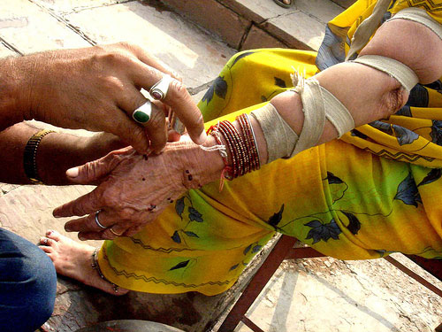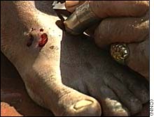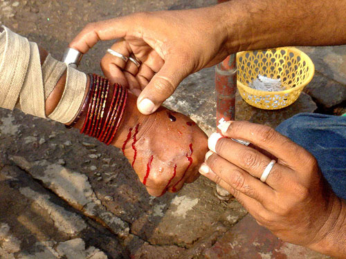الفصد في بلاد الهند لا يزال الهنود في شوارع دلهي القديمة يعالجون بالفصد ، وهذا هو الحاكممحمد غياسواحد من أشهر المعالجين في هذا الفن والذي يعالج في الهواء الطلق خارج مسجد دلهي الكبير ، ويدّعي بأنّه يمكنه علاج الكثير من الأمراض منها إلتهابالمفاصل , والسرطان. ![]() إنّ العقيدة الأساسية في العلاج هوالإعتقاد أن الدمّ الملوّث " الفاسد " أساس كلّ الأمراض: تخلّصمن الدمّ الفاسد وأنت تتحسّن . قد يحتاج المريض الى عدّة جلسات حتى يصل الى مرحلة الشفاء التام. ومن أجل خروج الدمّ بسهولة أكثر، غياس يجعل مرضاه يقفون أولا في الشمس لنصف ساعة، وثم يبقيه واقفا ويربطه من الخصر " وسط البطن " الى الأسفل بحبل، ومن ثم يقوم بشرط العروقبنصل شفرة حلاقة. ![]() ![]() ![]() ![]() ![]() ![]() ![]() ![]() ![]() ![]() ![]() ![]() ![]() ![]() ![]() ![]() ![]() ![]() ![]() ![]()